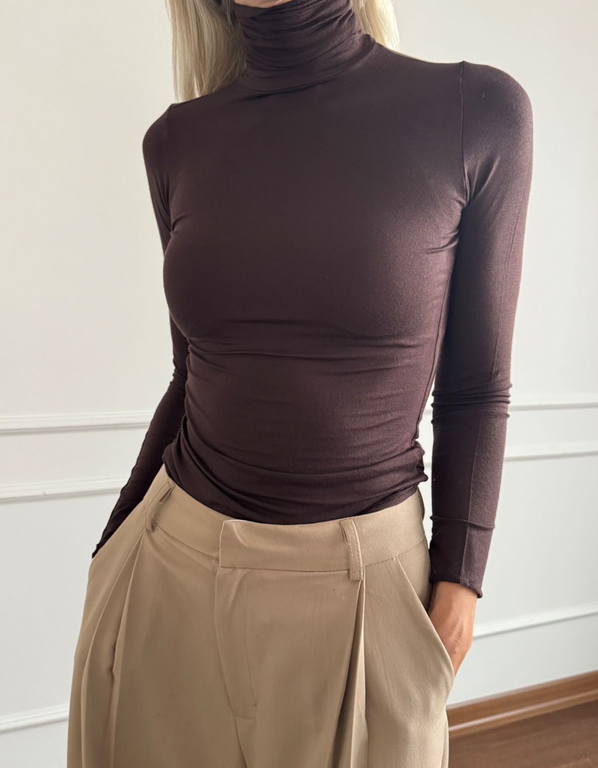 Acı Kahve Boğazlı Transparan Yumuşak Dokulu Bluz