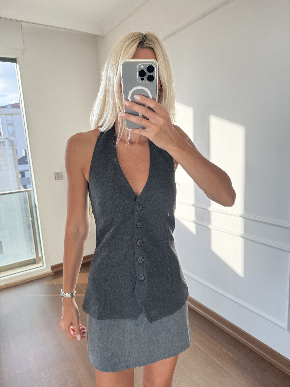 Boyundan Geçmeli Düğmeli Yelek