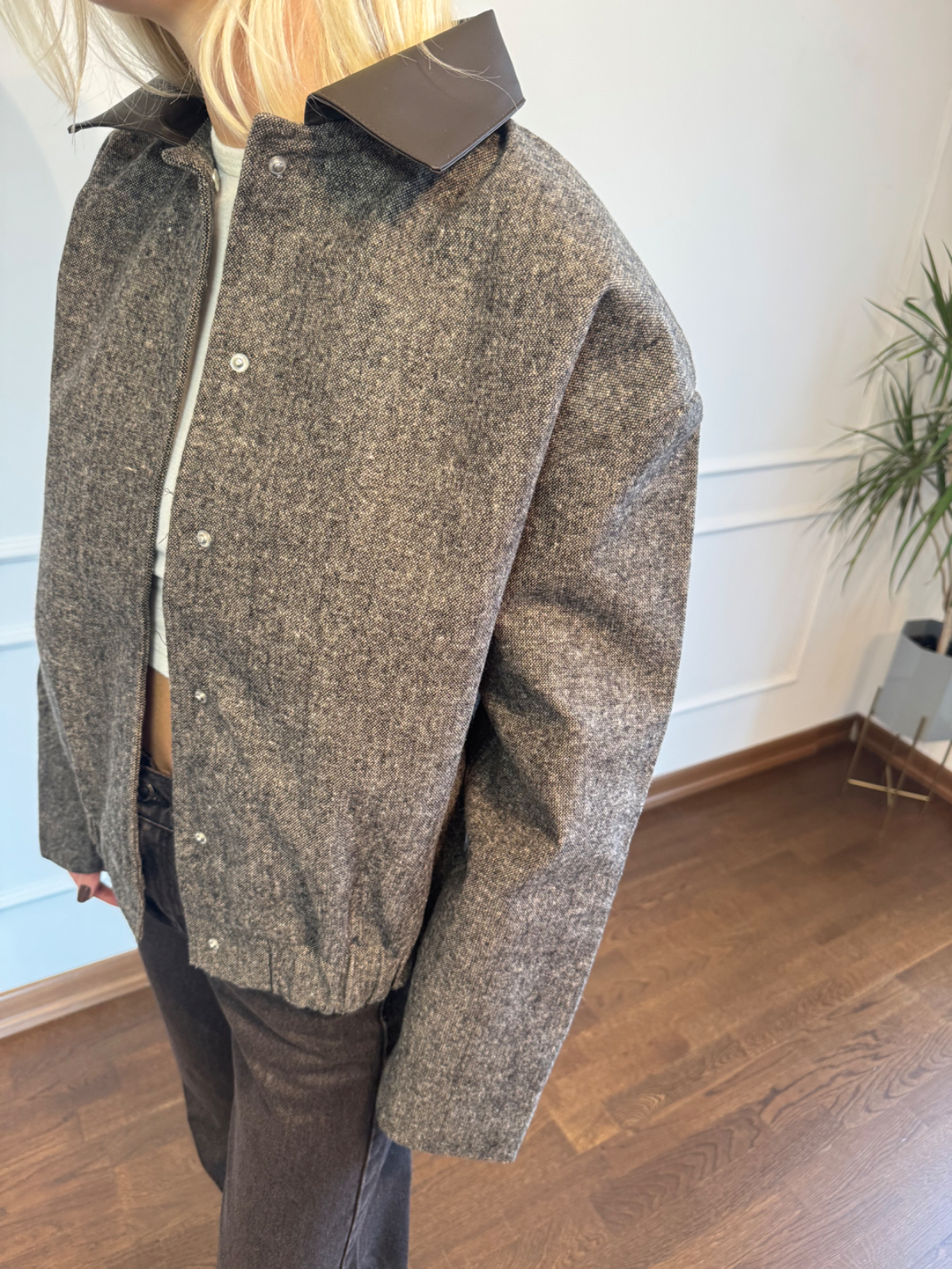 Deri Yaka Detaylı Bomber
