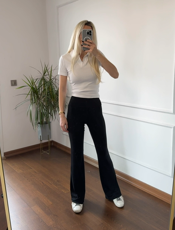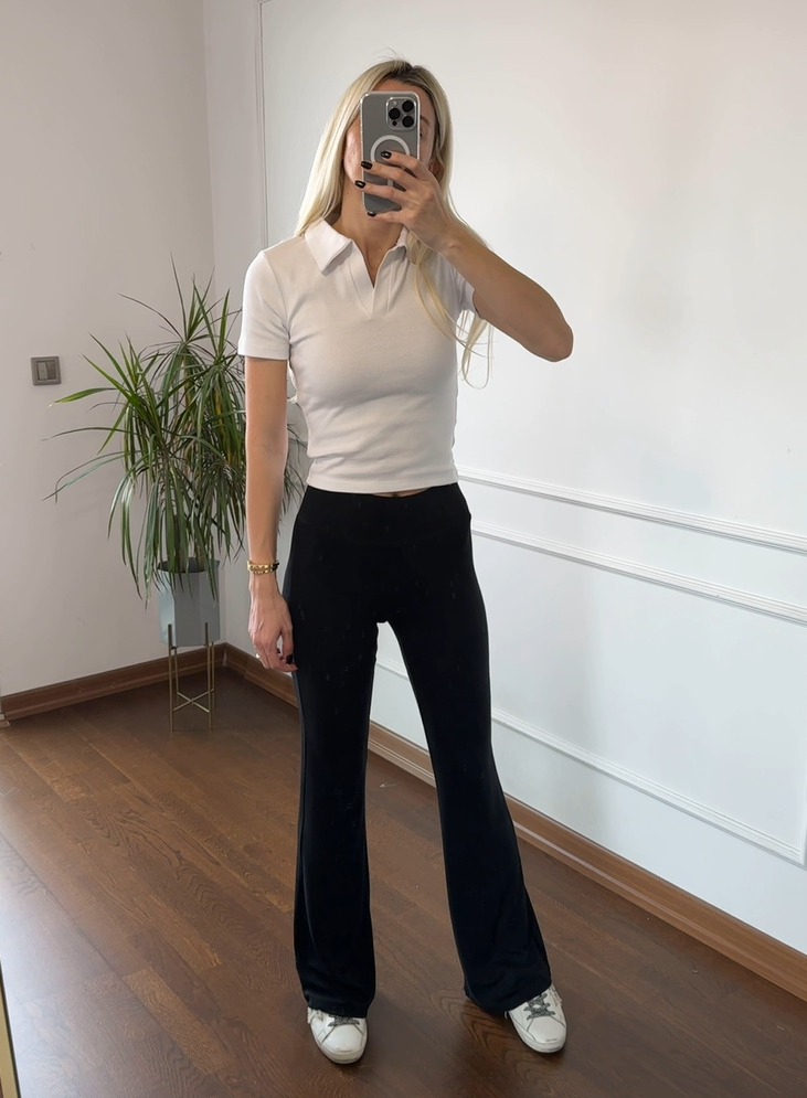 Kalın Kemerli Soft Touch Likralı İspanyol Paça Siyah Tayt