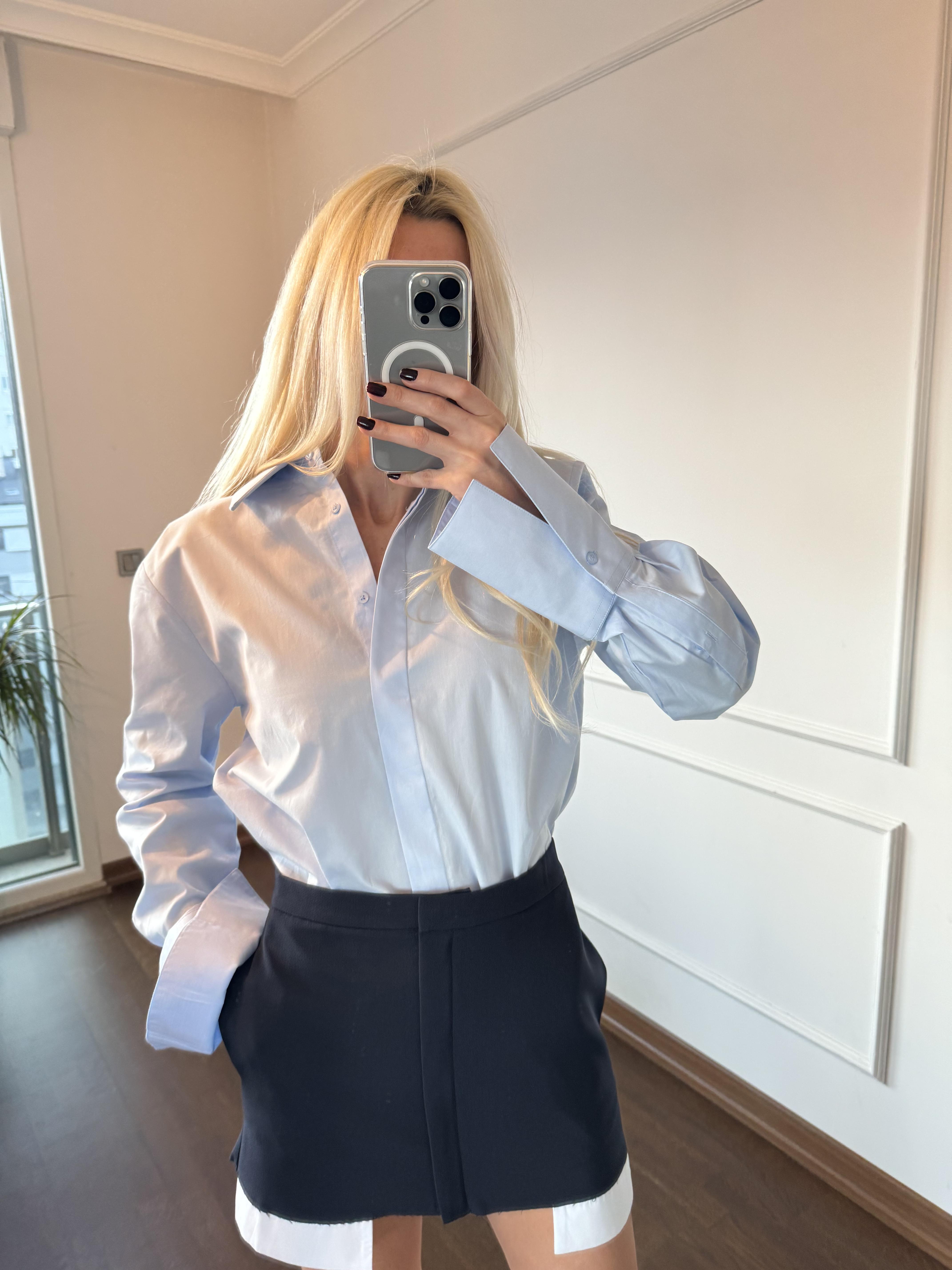 Premium Duble Manşetli Mavi Gömlek