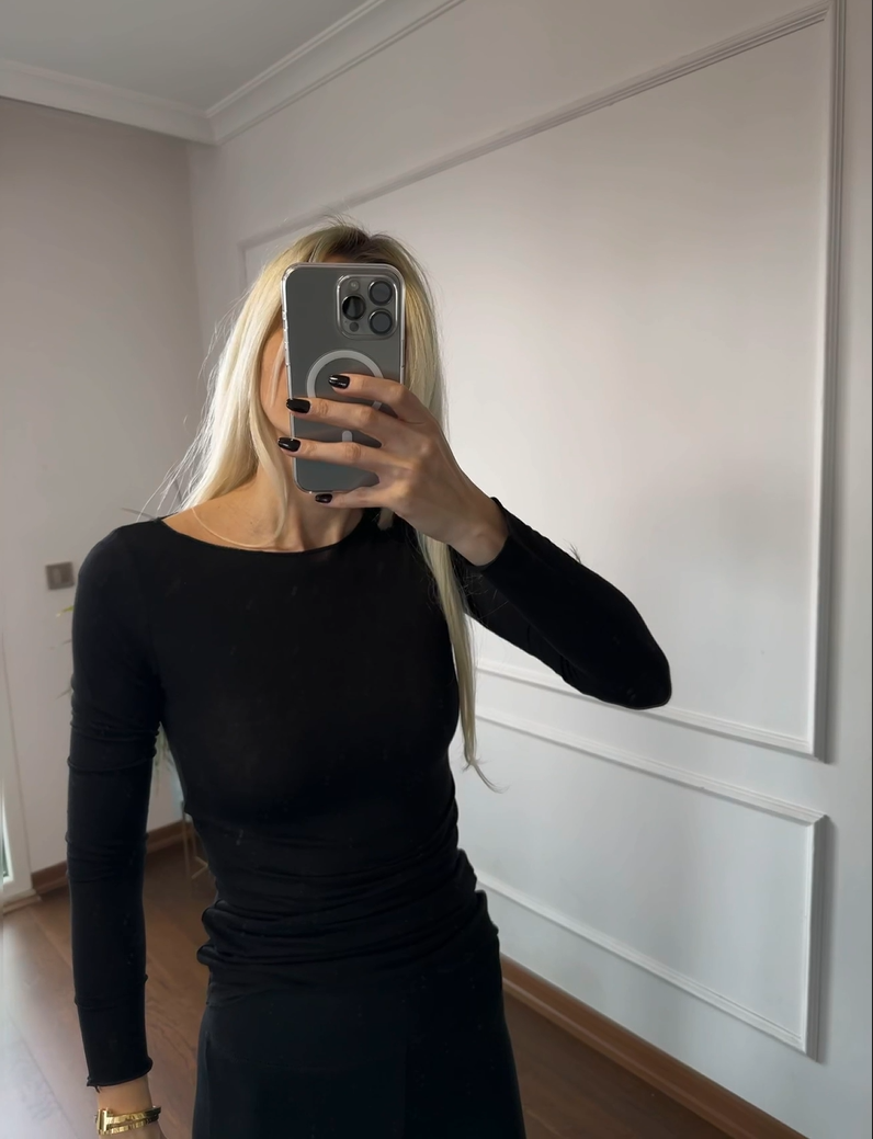 Siyah Transparan Yumuşak Dokulu Bluz