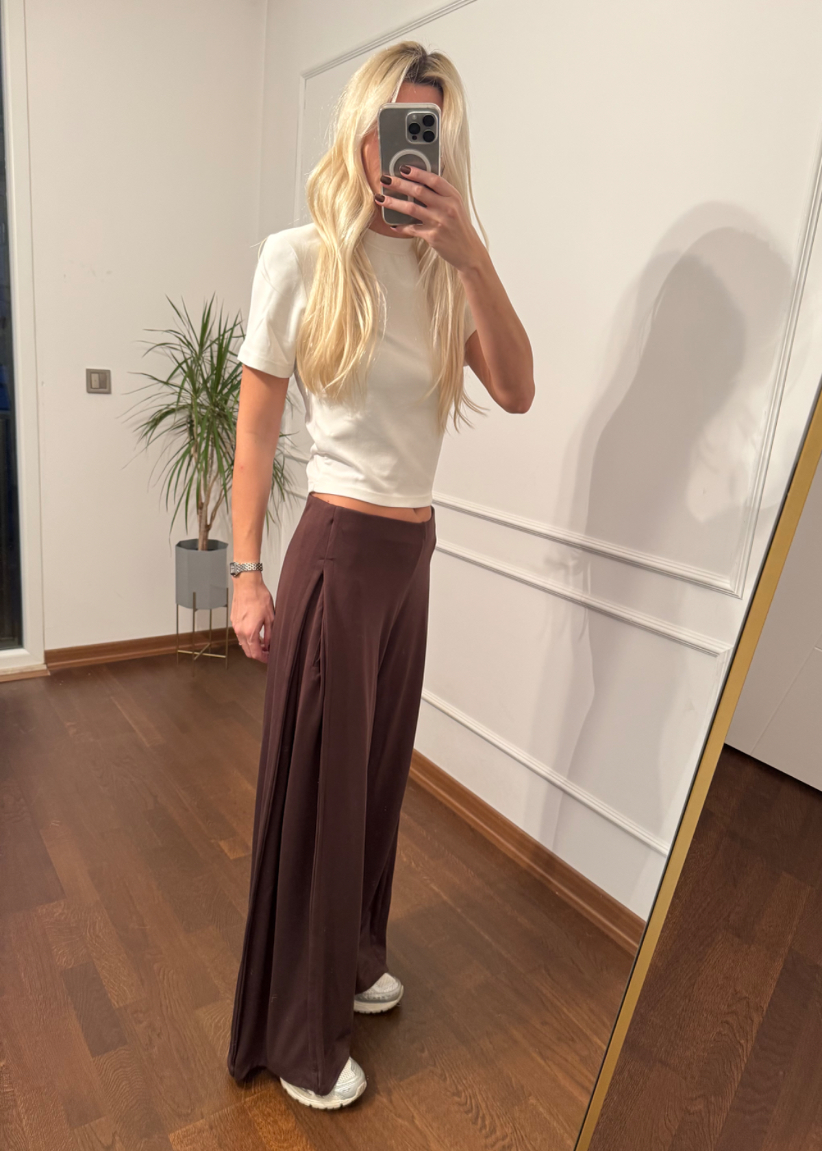 Yanları Pileli Bol Paça Kahverengi Eşofman