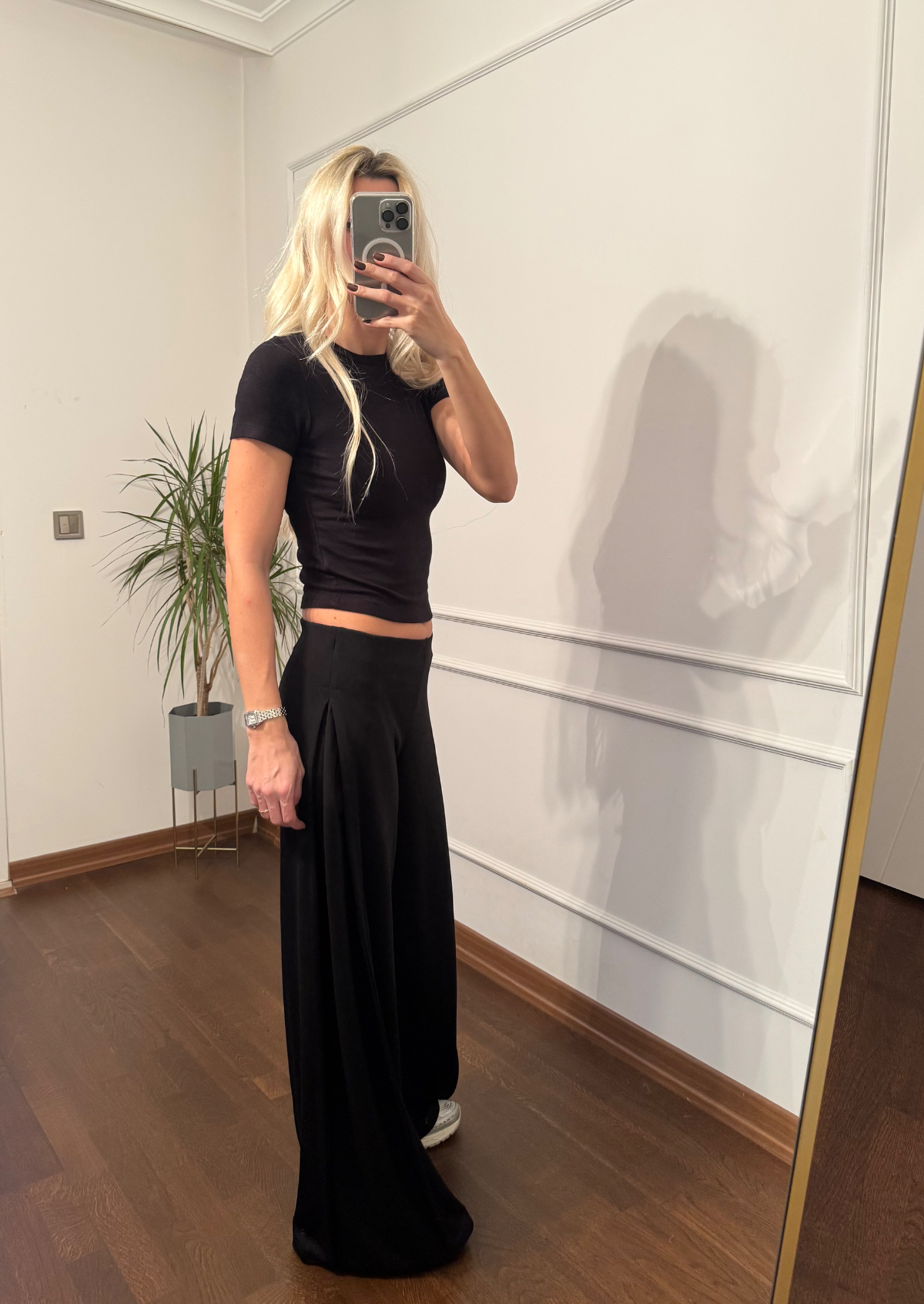 Yanları Pileli Bol Paça Siyah Eşofman